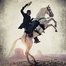 corriendo a todo galope sobre su caballo blanco por esos paisajes desérticos